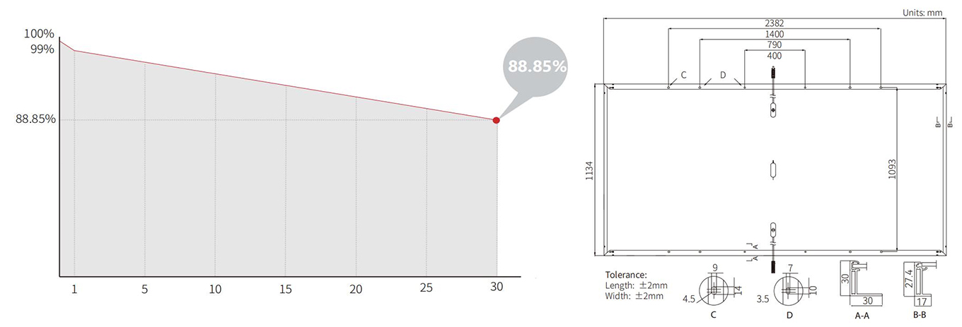 ▶ El diseño único del marco reduce eficazmente el impacto de la acumulación de polvo y mejora la ganancia de generación de energía durante todo el ciclo de vida